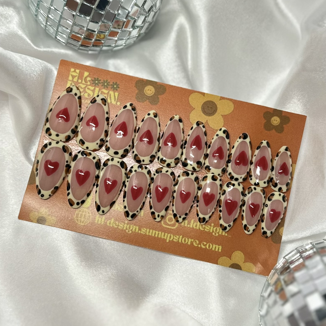 Adult Long Almond Leopard Heart Press-on Nails