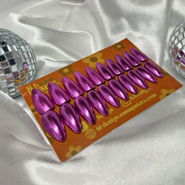 Adult Pink Chrome Long Pointed Press-on Nails